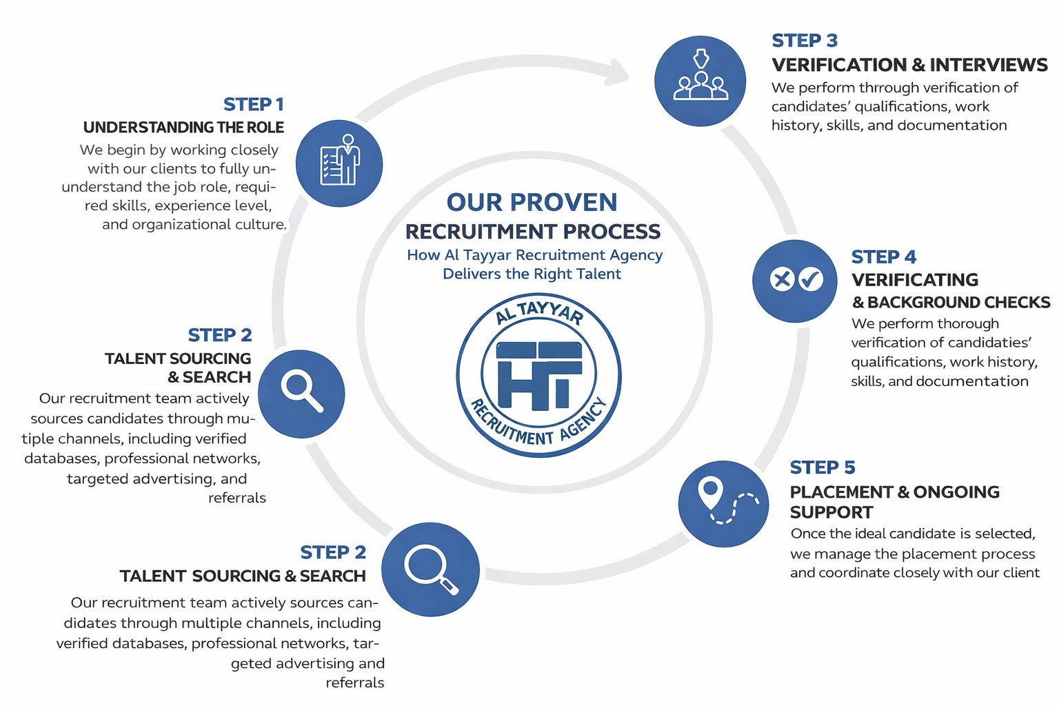 In addition to employer-focused recruitment, Al Tayyar Recruitment Agency also provides professional job consultancy services to overseas job seekers in Pakistan who are seeking career opportunities in Qatar. This dual expertise serving both employers and candidates has positioned us among the top manpower placement agencies in Pakistan for Qatar.